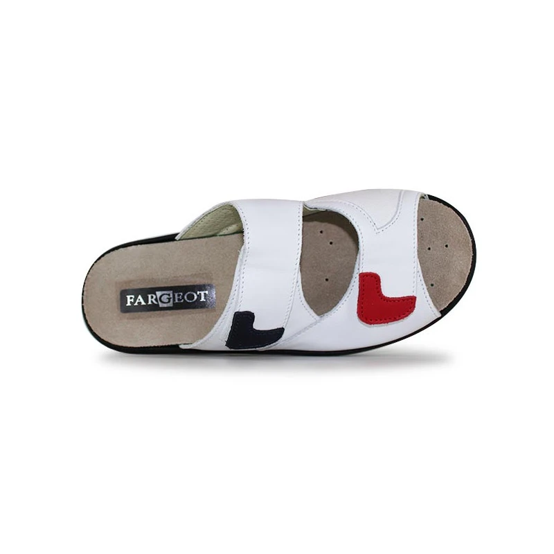 Les personnes souffrant d’hallux valgus apprécieront les mules Velcro DORIANE de la marque FARGEOT. Conçues en cuir lisse, ces mules femme chausseront parfaitement vos pieds déformés grâce à leur partie en matière stretch de grande qualité. Parfaitement ajustables à l’avant par leurs deux brides Velcro, elles les maintiendront également très bien.