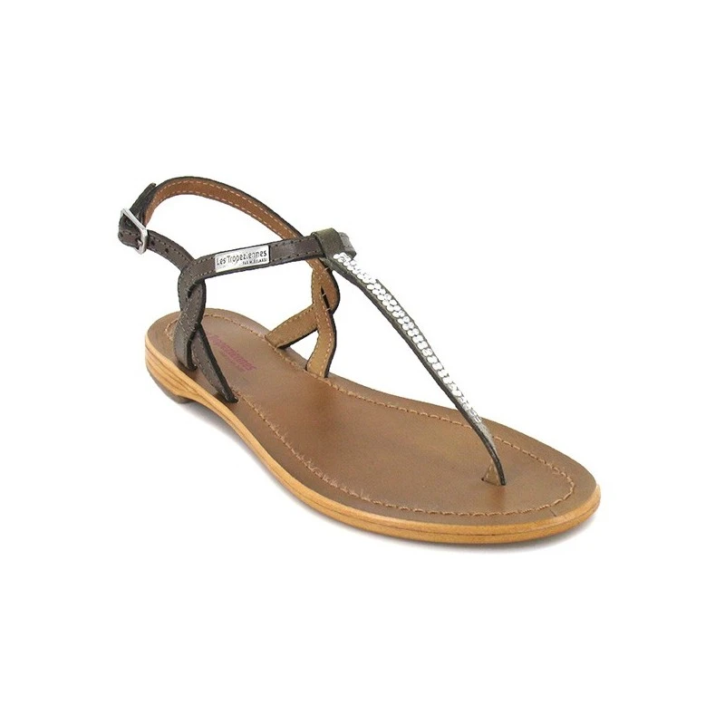 Sandales plates pour femme Les Tropéziennes. Habillées de cuir, elles se parent d’une rangée de strass pour mettre en valeur votre look estival. Idéals pour les journées chaudes, ces jolis nu-pieds bien ajourés vous séduiront par leur style élégant.