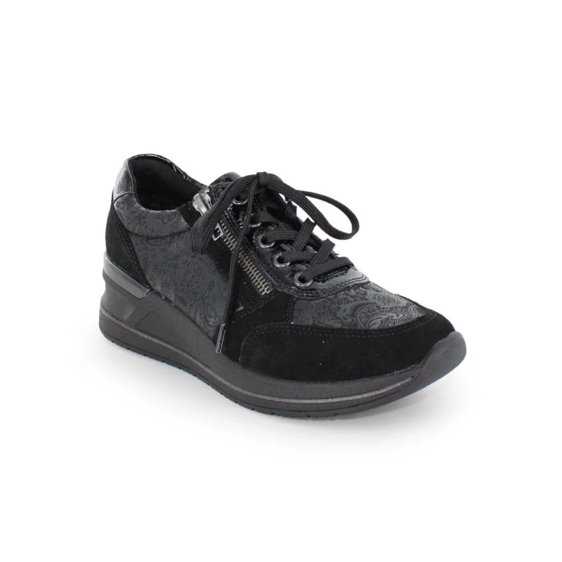 Vous ne resterez pas insensible au chaussant trĂšs confortable des baskets avec semelle compensĂ©e D3203 de la marque REMONTE. ProposĂ©es en textile stretch et matiĂšre synthĂ©tique lĂ©gĂšrement fripĂ©e, elles sont aussi parfaitement adaptĂ©es pour les pieds sensibles et dĂ©formĂ©s.Â