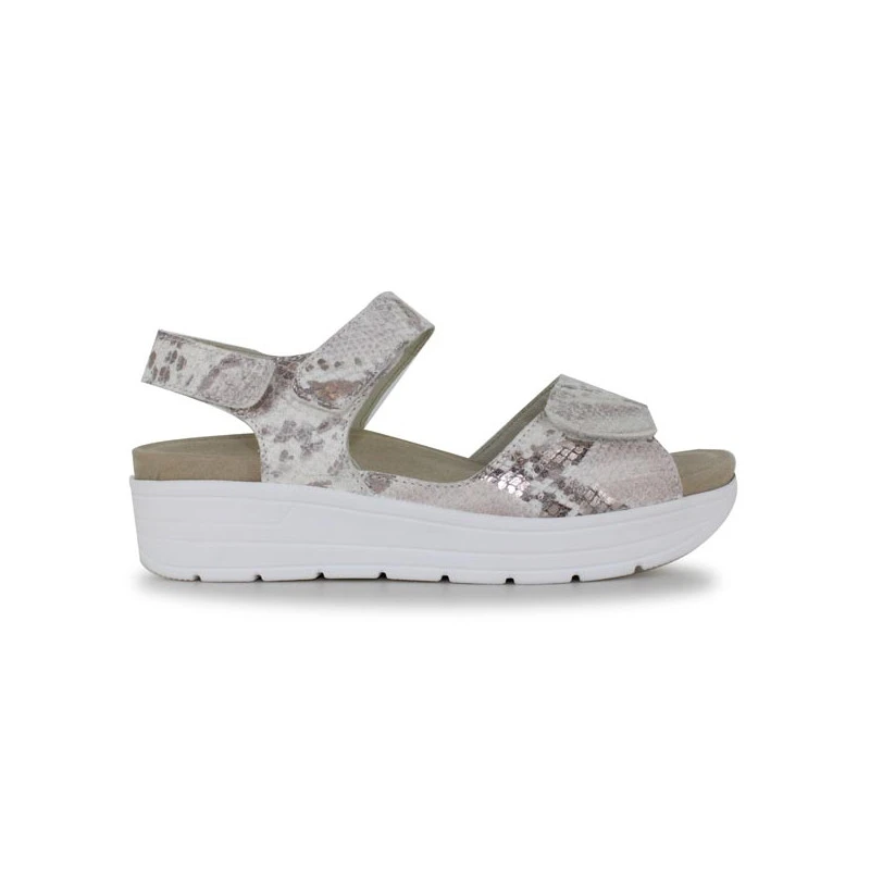 On est fan du style très actuel et féminin des sandales Velcro pour femme GRETA 48000 de la marque SOLIDUS. Tout en cuir imprimé serpent, orné de quelques touches métallisées, ces sandales femme se portent en toute occasion ! Elles disposent de diverses brides Velcro, vous facilitant ainsi l’ajustement et le maintien à chaque pied. Leur confort, elles le doivent à leur légèreté et à leur semelle intérieure amovible matelassée. De plus, avec leur semelle compensée bien stable, qui épouse le déroulement du pas, les sandales GRETA 48000 sont idéales pour marcher avec assurance.